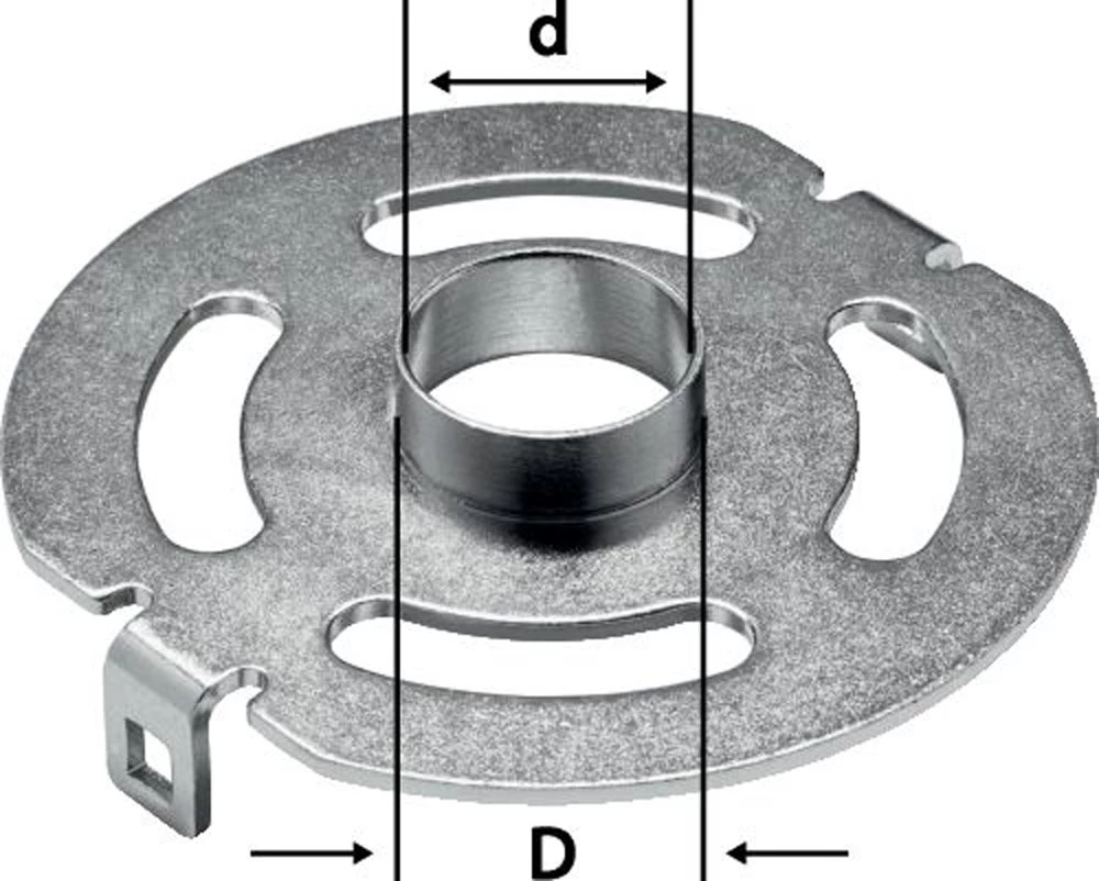 - Kopierring zum abtasten von Frässchablonen, werkzeuglos in die Oberfräse einsetzbar