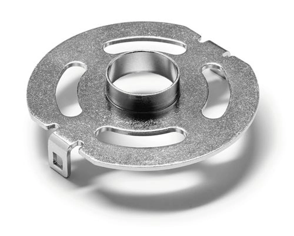 - Kopierring zum abtasten von Frässchablonen, werkzeuglos in die Oberfräse einsetzbar