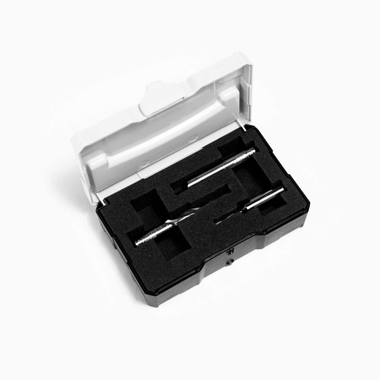 Mit diesem Fräser-Set hast du deine wichtigsten Fräser immer griffbereit. Es ist eine praktische Möglichkeit zur Aufbewahrung und zum Transport der drei Standard-Fräser, die mit Origin geliefert werden. Die spezielle Schaumstoffeinlage schützt deine Fräser außerdem vor Beschädigungen und dank des Shaper Micro-Systainers sind deine Fräser immer perfekt organisiert.